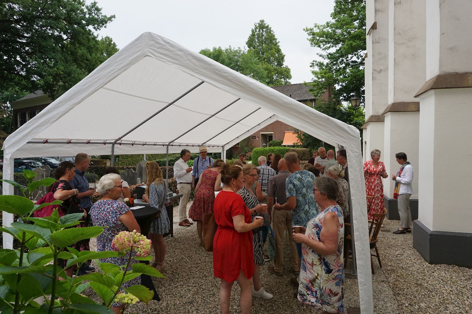 Zondag 22 juni was het zover: de intrede van ds Brinkman in onze gemeente. Bij de kerk in Zoelen stond een tent om iedereen hartelijk te ontvangen met koffie, thee en chocolaadjes met daarop de torens van al onze kerken. | ||